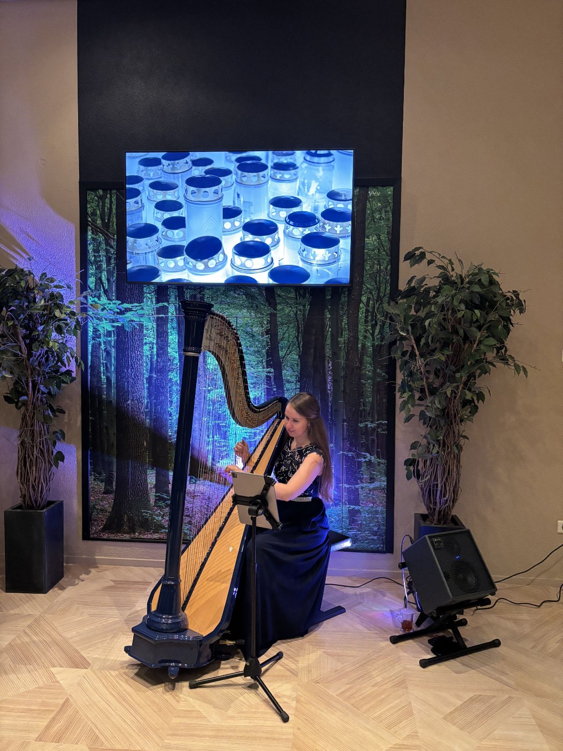 Dit jaar was er voor het eerst òòk livemuziek in onze aula. Wat hebben we genoten van de mooie klanken van de harp van Sari van Brug!